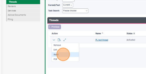 In the following Tasks and Thread section, complete or abort any outstanding tasks. In Threads and Workflows, ensure all workflow are finalised or closed. You may have to complete some final tasks and actions for the archived client, however this allows you to check if there are any action items that requires no further action.