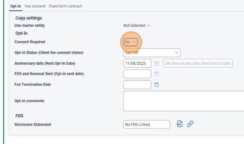 For departing clients, ensure ongoing fee agreements and fixed term fees are terminated. Set Consent Required to “No” and update or leave blank as appropriate. For fixed-term clients, update contract details and mark all relevant subscriptions as ceased.
